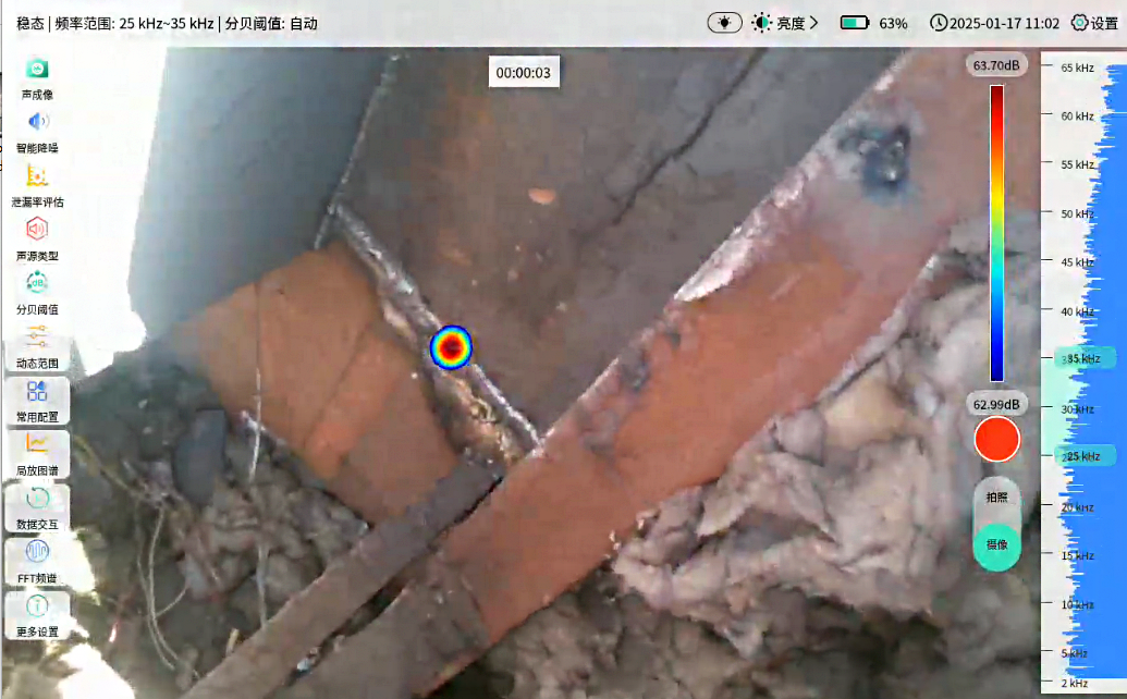 三大行业环保设施管线密布、工况复杂,多处于高温、高空、狭窄区域,密封性检测至关重要。一旦保温层覆盖,焊缝孔隙、虚焊等漏点将被掩盖。行业内常用的肥皂水涂抹、听声辨别等常规方法,效率低下、漏检率高,且无法触及隐蔽部位,难以适配现代化改造需求。